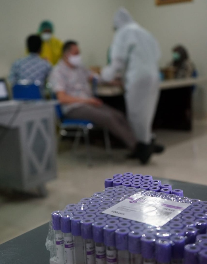 Bandarlampung- Tiga belas pegawai kantor pusat Bank Lampung dinyatakan reaktif berdasarkan hasil rapid test yang dilakukan Bank Lampung Selasa (15/9/2020). Dari 13 orang pegawai tersebut 4 orang dinyatakan negatif usai melakukan swab.