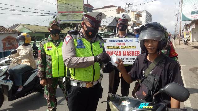 Terhadap masyarakat yang tidak memakai masker dilakukan penindakan dengan cara teguran tertulis ataupun surat pernyataan tertulis kemudian ada tindakan yang sifatnya push up itu juga itu juga kemauan pelanggar sendiri kemudian sebagian orang yang tidak mampu tidak mempunyai uang diberikan masker, kemudian yang mampu beli kita perintahkan untuk beli.