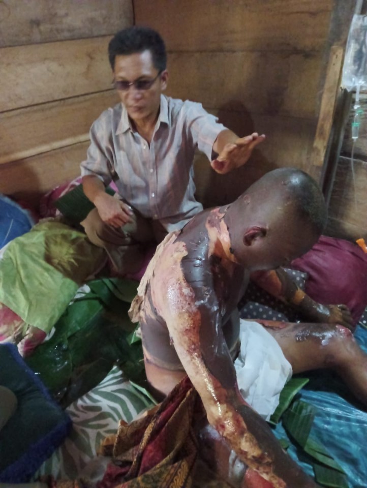 “Kondisi tubuhnya 70%  terkena luka bakar, saat ini yang dilakukan adalah pengobatan seadanya, ini saya lakukan atas permintaan pihak keluarga. Jika bisa ya harus segera dilakukan perawatan intensif.” ucapnya. (zim/feb)