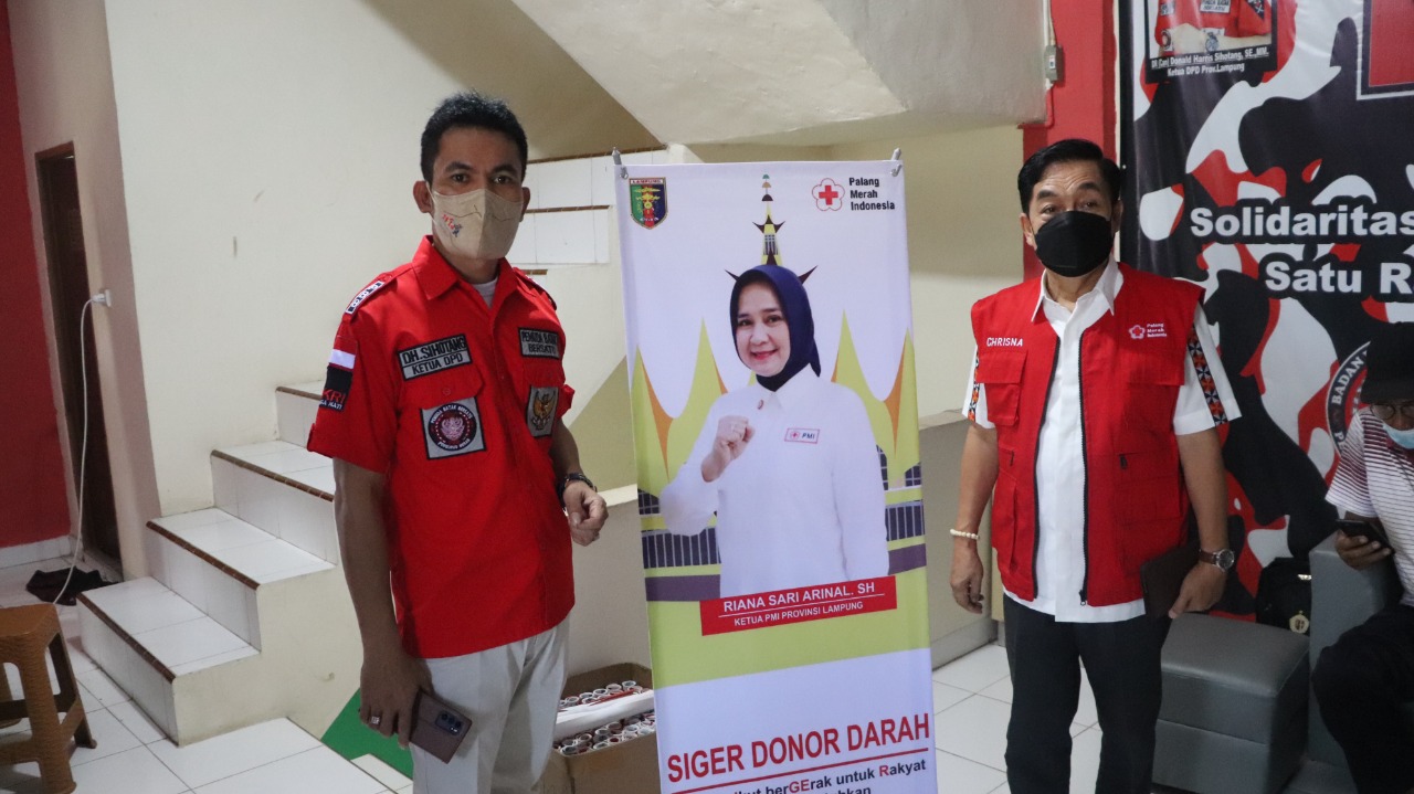 Ketua PMI Provinsi Lampung, Riana Sari Arinal melalui Kabid Infokom PMI yang diwakili Achmad Chrisna Putra, mengucapkan terimakasih kepada DPD Pemuda Batak Bersatu (PBB) yang sudah peduli dalam mengadakan kegiatan bakti sosial Donor Darah ini. (rls)
