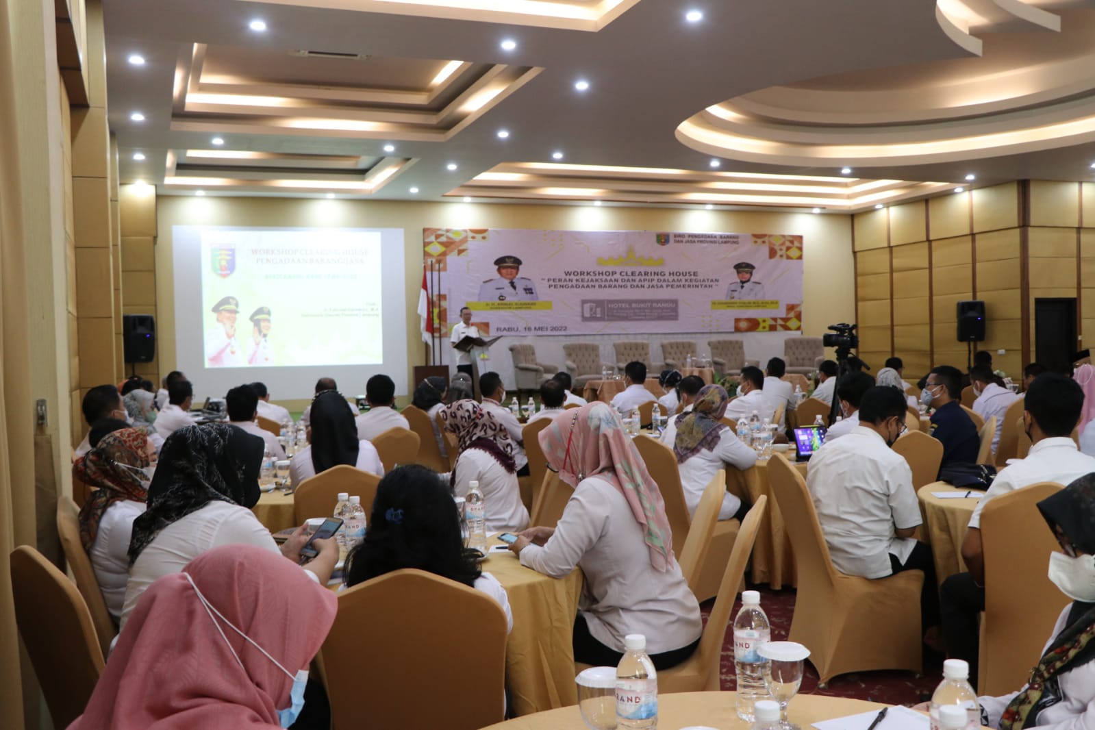 Workshop Clearing House yang mengusung tema Peran Kejaksaan dan APIP Dalam Kegiatan Pengadaan Barang dan Jasa Pemerintah, menghadirkan beberapa narasumber, yakni Inspektur Provinsi Lampung Ir. Fredy, S.M.,M.M, Wakajati Provinsi Lampung Asnawi, Asisten Perdata dan Tata Usaha Negara (Asdatun) Kejati Lampung Muhammad Hari Wahyudi, Kasie Pertimbangan Hukum Kajati Lampung Dicky Zaharuddin, dan di moderatori oleh Kepala Bagian (Kabag) LPSE Biro Pengadaan Barang dan Jasa (BPBJ), Dodi Hendrawan. (kmf)
