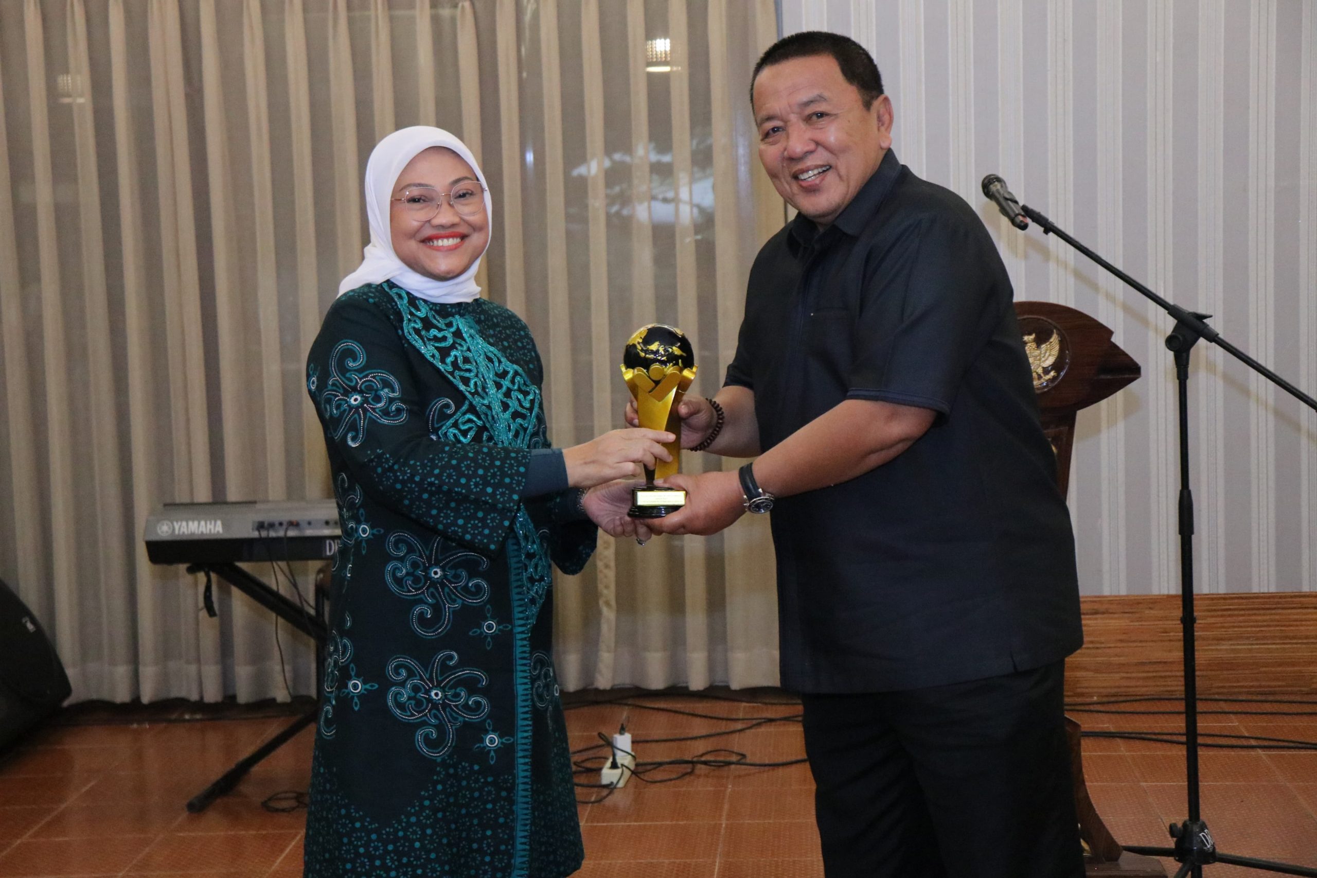 BANDAR LAMPUNG- Gubernur Lampung Arinal Djunaidi menerima penghargaan sebagai Provinsi Peduli Pekerja Migran Indonesia dari Kementerian Ketenagakerjaan RI yang diserahkan langsung Oleh Menaker Ida Fauziyah pada kegiatan Ramah Tamah di Taman Santap Rumah Kayu, Senin (18/12/2023).