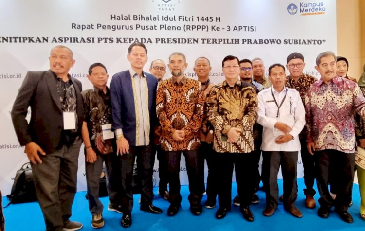 LAMPUNG- Rektor Universitas Teknokrat Indonesia Dr HM Nasrullah Yusuf SE MBA menghadiri halalbihalal dan rapat pleno Asosiasi Perguruan Tinggi Swasta Indonesia (Aptisi) di The Krakatau Grand Ballroom Taman Mini Indonesia Indah, Jakarta, Sabtu (11/5/24).