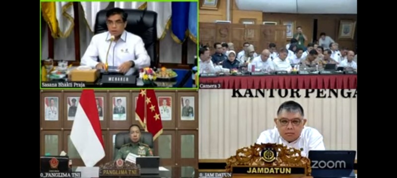 PAPUA – Penjabat Gubernur Lampung, Samsudin, mengikuti Rapat Koordinasi Pengendalian Inflasi dan Sosialisasi Kebijakan Upah Minimum Tahun 2025 secara virtual, di Kantor Gubernur Provinsi Papua, Senin (09/12/2024).
