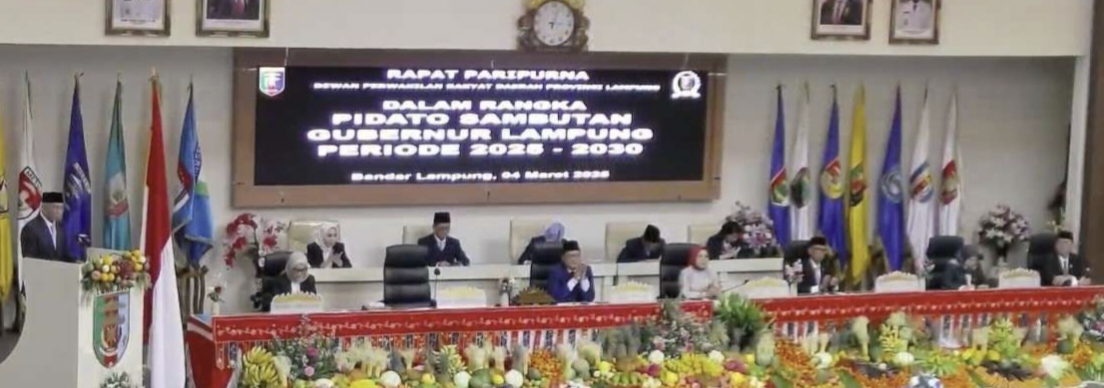 LAMPUNG- DPRD Provinsi Lampung menggelar rapat paripurna dalam rangka pidato bersama Gubernur Lampung periode 2025-2030, Selasa (4/3/2025).