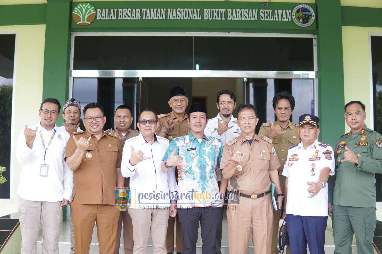 Kunjungan Bupati, Dedi Irawan didampingi langsung Asisten I Bidang Pemerintahan dan Kesejahteraan Rakyat, Audi Marpi, S.Pd., M.M., Kepala Dinas Pekerjaan Umum dan Penataan Ruang (DPUPR), Tanwir, S.E., M.M., Kepala Dinas Lingkungan Hidup (DLH), Husni Aripin, S.IP., dan Kepala Dinas Perhubungan (Dishub), Ariswandi, S.Sos., M.P., tersebut disambut langsung oleh Kepala BBTNBBS, Hifzon Zawahiri, S.E., M.M., didampingi Kabid. Teknis Konservasi, Tegus Ismail, S.Hut., M.A., M.Eng., Kabid. Pengelolaan TN Wilayah I Semaka, Hermawan, S.Hut., dan Kasi. Pengelolaan TN II Bangkunat, Jimmy Fonda, S.H.