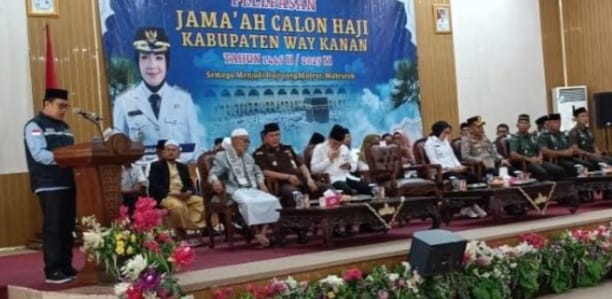Plt. Bupati Way Kanan Ayu Asalasiyah melepas secara langsung calon jemaah Haji didampingi Kepala Kementerian Agama Kabupaten Way Kanan, Masir Ibrahim, Pj. Sekda Arie Anthony Thamrin, Danlanudad Gatot Subroto Letkol CPN I Putu Arry PB Pratuana, Kepala Kemenag, Tokoh Agama serta sejumlah perwakilan dari TNI, Polri, Kejaksaan, dan instansi pemerintah lainnya.