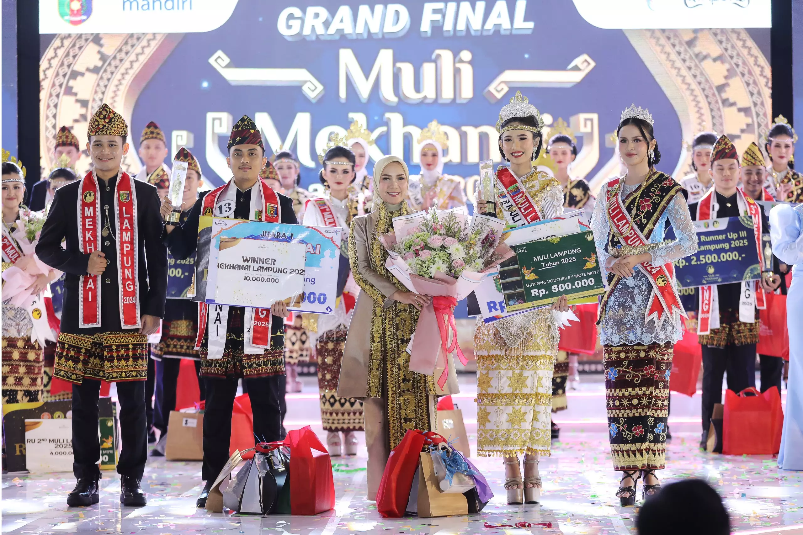 Dalam acara itu, Ketua Dewan Kerajinan Nasional Daerah (Dekranasda) Provinsi Lampung Ibu Purnama Wulan Sari Mirza didapuk sebagai salah satu dewan juri dan menyerahkan langsung plakat dan selempang kepada pemenang Muli Mekhanai Tahun 2025.