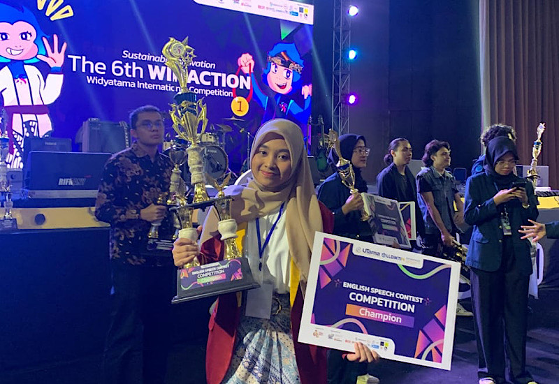 BANDUNG- Mahasiswi angkatan 2022 Program Studi Bahasa Inggris Fakultas Sastra dan Ilmu Pendidikan (FSIP) Universitas Teknokrat Indonesia Dwi Jihantari menjadi juara I cabang speech pada The 6th Widyatama International Competition Bandung, 28 Mei 2025 yang lalu.