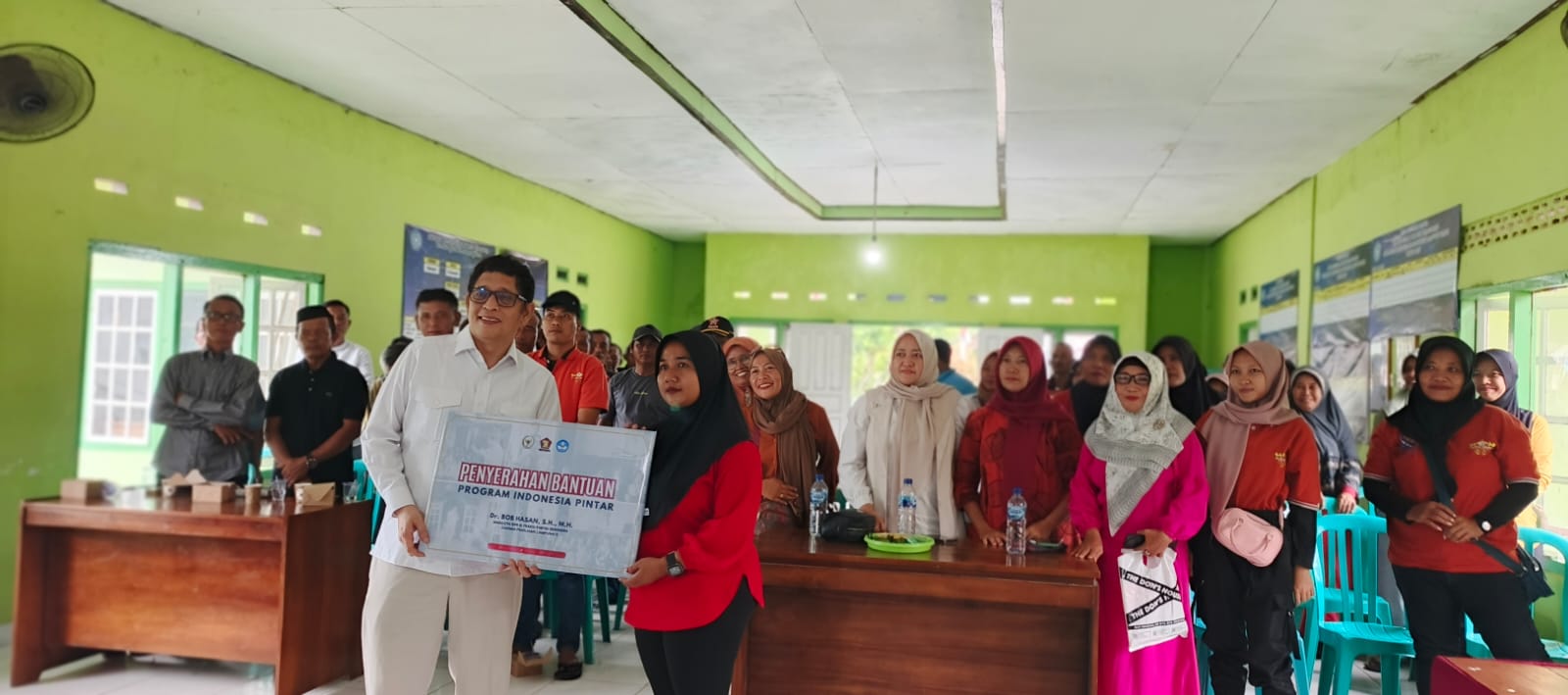 Selain menyerap aspirasi, Bob Hasan menyerahkan bantuan Program Indonesia Pintar (PIP) kepada pelajar penerima manfaat.