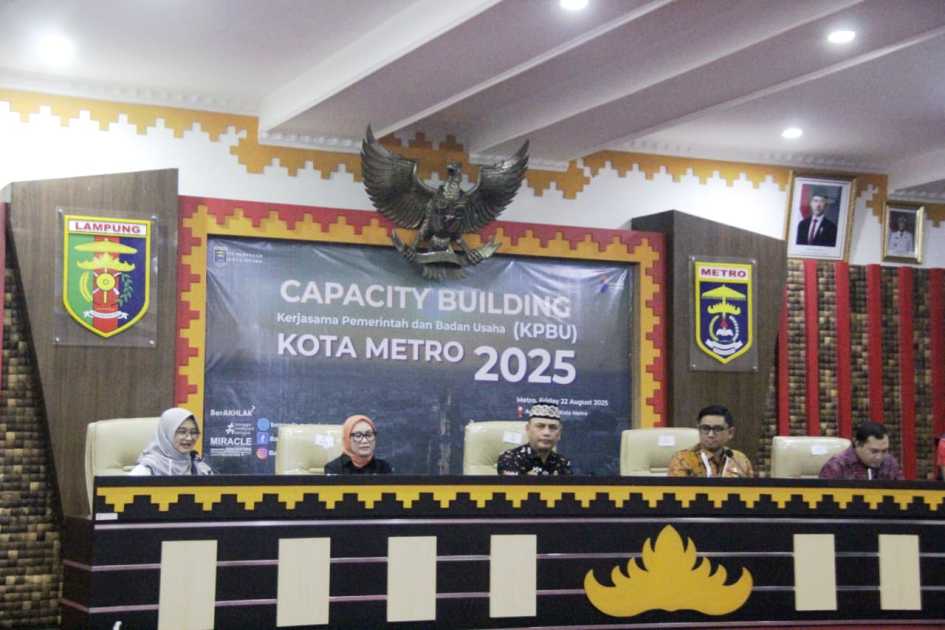 METRO – Pemerintah Kota Metro melalui Badan Perencanaan Pembangunan Daerah (Bappeda) menggelar Capacity Building Kerja Sama Pemerintah dan Badan Usaha (KPBU) di Aula Pemda, Jumat (22/8/2025). Kegiatan ini bertujuan memperkuat pemahaman aparatur daerah dalam menyiapkan dan melaksanakan proyek pembangunan dengan melibatkan sektor swasta.