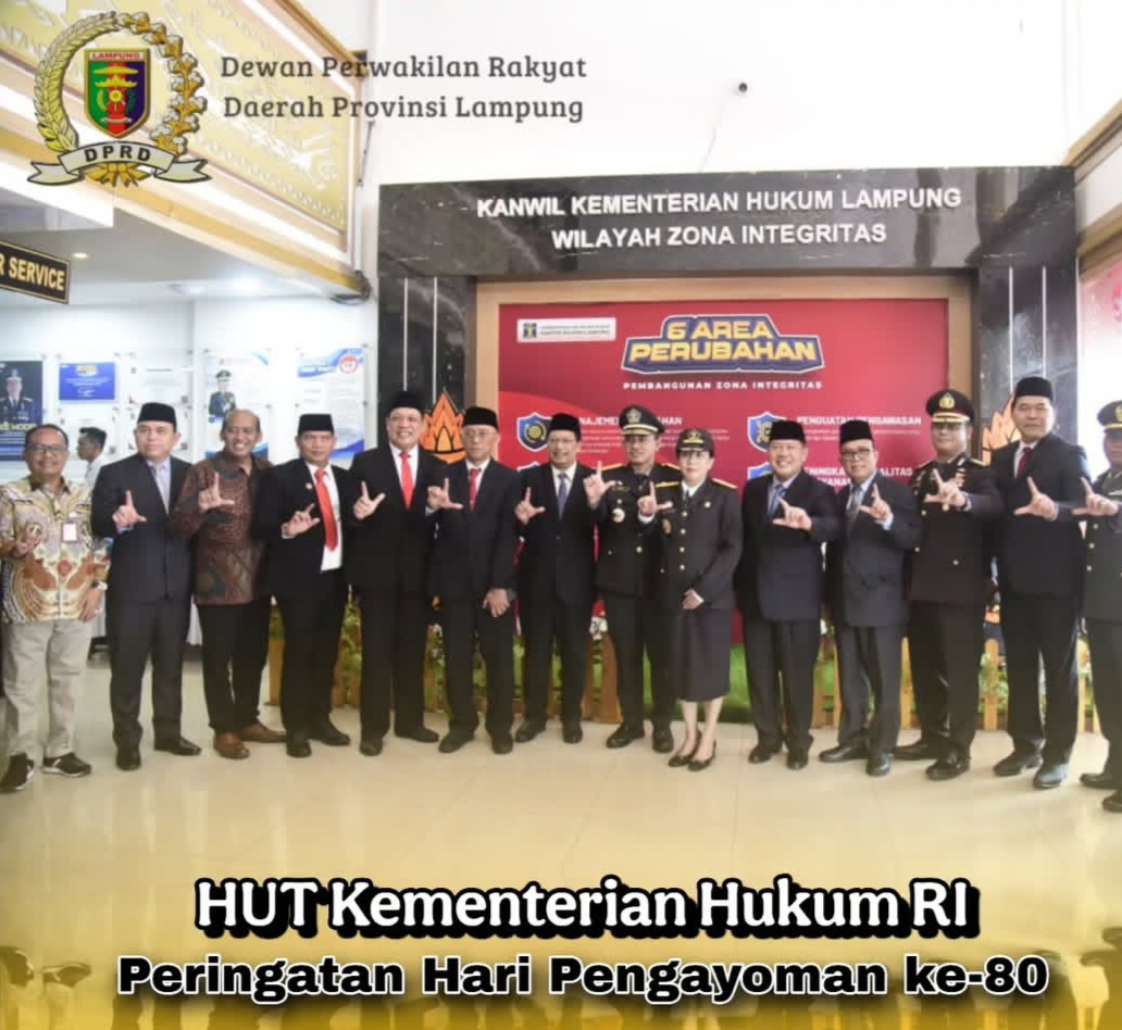 LAMPUNG- Anggota Komisi I DPRD Provinsi Lampung, Mohammad Reza Berawi, SH., MH. menghadiri acara Peringatan Hari Pengayoman ke-80 dalam rangka HUT Kementerian Hukum Republik Indonesia di Kantor Wilayah Kementerian Hukum Lampung, Jum’at (22/8/2025).