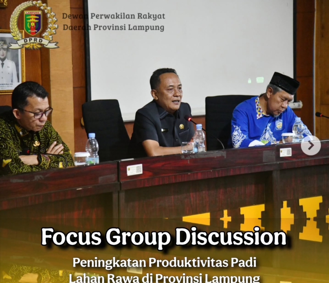 LAMPUNG- Anggota Komisi V DPRD Provinsi Lampung Agus Sutanto,. ST hadiri FGD Peningkatan Produktivitas Padi Lahan Rawa, Kamis (28/8/25).