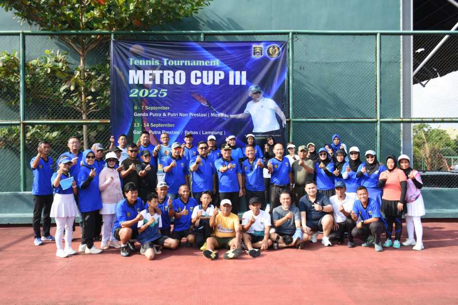 METRO- Wali Kota Metro, H. Bambang Iman Santoso, didampingi Wakil Wali Kota Metro, Dr. M. Rafiq Adi Pradana, secara resmi membuka Tennis Tournament Metro Cup III 2025 di Lapangan Tenis Garuda, Metro Timur, Sabtu (6/9/2025). Turnamen tahunan ini menjadi wadah pembinaan olahraga sekaligus mempererat silaturahmi antar-atlet di Bumi Sai Wawai.