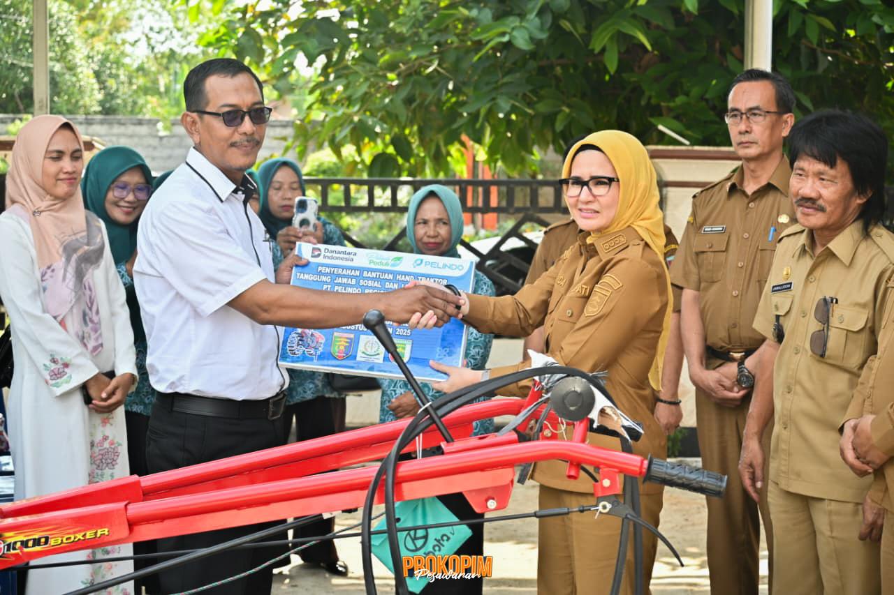 PESAWARAN- Bupati Pesawaran Nanda Indira Bastian Hadiri Acara Penyerahan Bantuan Hand Tractor kepada Badan Usaha Milik Desa (BumDes) Bumi Agung, Kecamatan Tegineneng, Senin, (15/9/25)