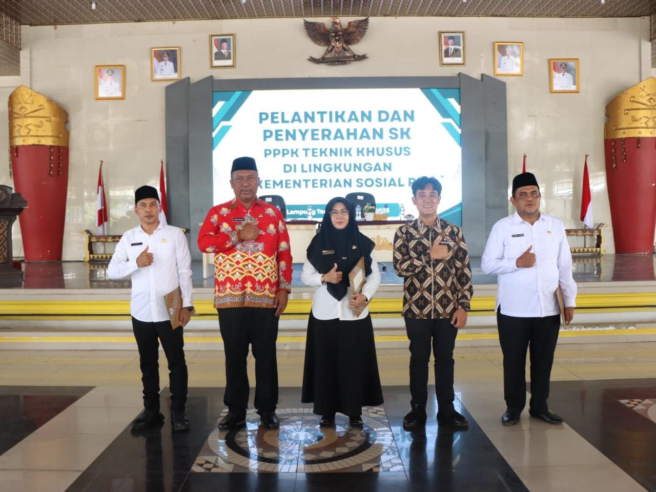 Dalam laporannya, Kepala Dinas Sosial Lampung Tengah, Ari Nugraha Mukti menjelaskan bahwa penyerahan SK ini berdasarkan Surat Menteri Sosial Republik Indonesia Nomor 2740/1.3/KP.04/10/2025 tanggal 2 Oktober 2025, yang mengatur tentang pelantikan PPPK tenaga kesehatan, guru, dan pengangkatan PPPK teknis khusus di lingkungan Kementerian Sosial. “Ada total 248 orang yang menerima SK dari Menteri Sosial, yang terdiri dari 242 Pendamping PKH, 14 Tenaga Kesejahteraan Sosial Kecamatan, serta 2 pekerja sosial,” ujar Ari Nugraha Mukti. Dengan penetapan status sebagai PPPK, para tenaga pendamping ini diharapkan dapat meningkatkan kualitas pelayanan sosial di Kabupaten Lampung Tengah.