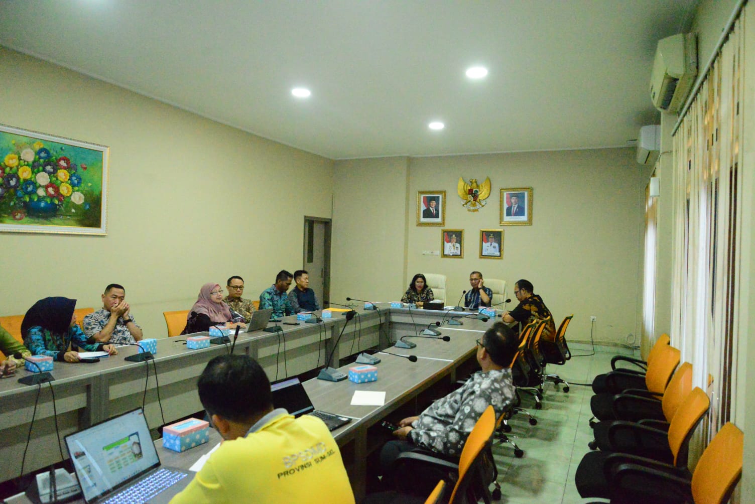 Rombongan BPSDM Lampung yang terdiri dari Sekretaris, Kepala Bidang, Koordinator, dan tim perumus diterima oleh Kepala BPSDM Sumsel, Prof. Dr. H.M. Edwar Juliartha, S.Sos., MM, didampingi Plt. Sekban, Kasubag Perencanaan, serta Akuntan BPSDM Sumsel, Eman Satria.