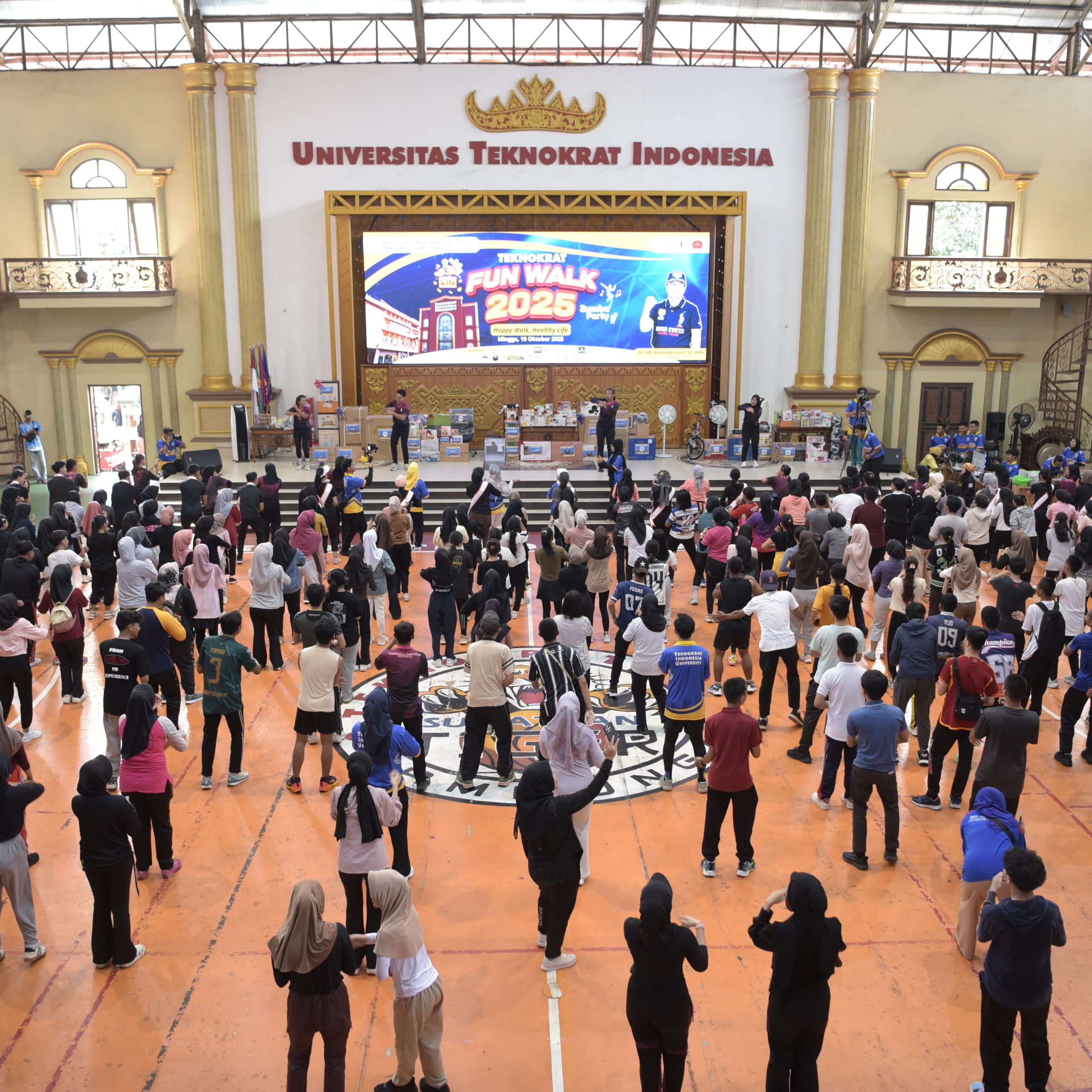 LAMPUNG- Kegiatan jalan sehat yang digelar Universitas Teknokrat Indonesia (UTI) pada Sabtu pagi semakin semarak dengan digelarnya senam zumba bersama di Gelanggang Mahasiswa Dr. HM Nasrullah Yusuf. Usai menempuh rute jalan sehat bertema “Happy Walk, Healthy Life”, seluruh peserta antusias mengikuti sesi zumba yang dipandu oleh sejumlah instruktur profesional.