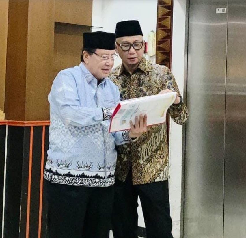 LAMPUNG- Rektor Universitas Teknokrat Indonesia Kampus Terbaik di Lampung, Dr. HM Nasrullah Yusuf, SE., MBA, yang juga menjabat sebagai Ketua Badan Pengelola Masjid Al Hijrah, menyampaikan laporan perkembangan pengelolaan dan aktivitas keagamaan masjid kepada Gubernur Lampung Rahmat Mirzani Djausal.