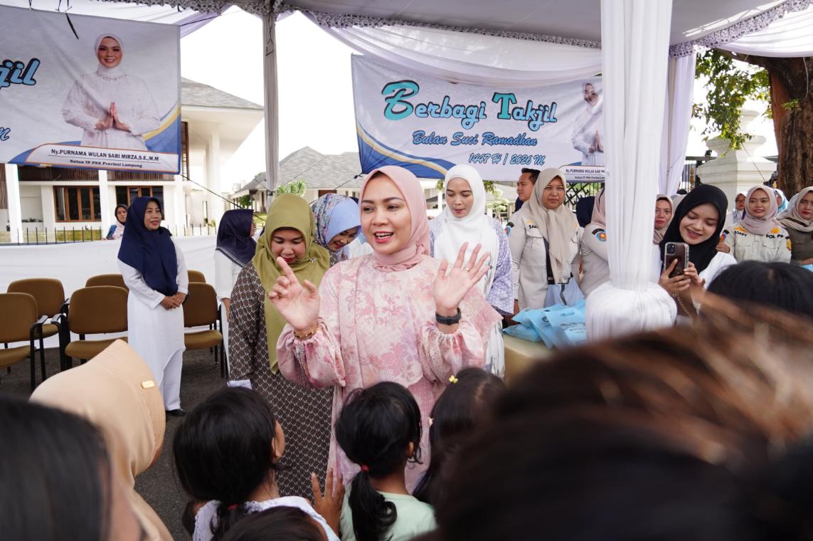 Ketua Tim Penggerak PKK Provinsi Lampung, Purnama Wulan Sari Mirza yang akrab disapa Batin Wulan, menyampaikan rasa syukur atas terlaksananya kegiatan pembagian takjil tersebut.