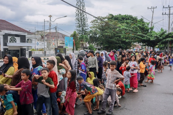 Pembagian 300 paket takjil yang terdiri dari makanan berat, makanan ringan, dan aneka snack tetap berjalan lancar, masyarakat yang menerima pun tetap tertib, kondusif, serta menunjukkan antusiasme dan semangat kebersamaan meskipun dalam suasana hujan.
