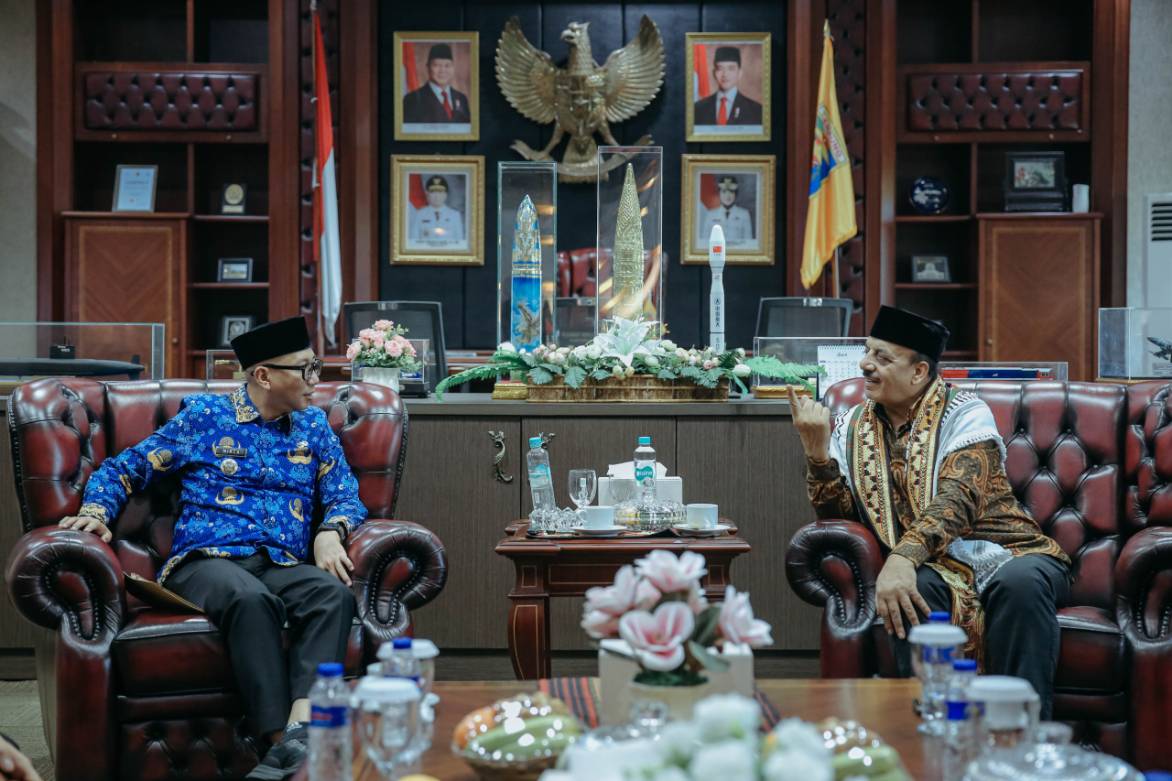 Bandar Lampung — Suasana hangat dan penuh keakraban terasa saat Gubernur Lampung, Rahmat Mirzani Djausal menyambut kedatangan Duta Besar Palestina untuk Indonesia, Abdalfatah A.K. Alsattari, di ruang kerjanya, Senin (20/4/2026).